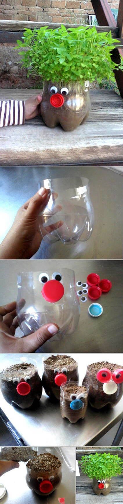 자라나는 식물이 머리카락처럼 보이게 한 재미난 아이디어에요!