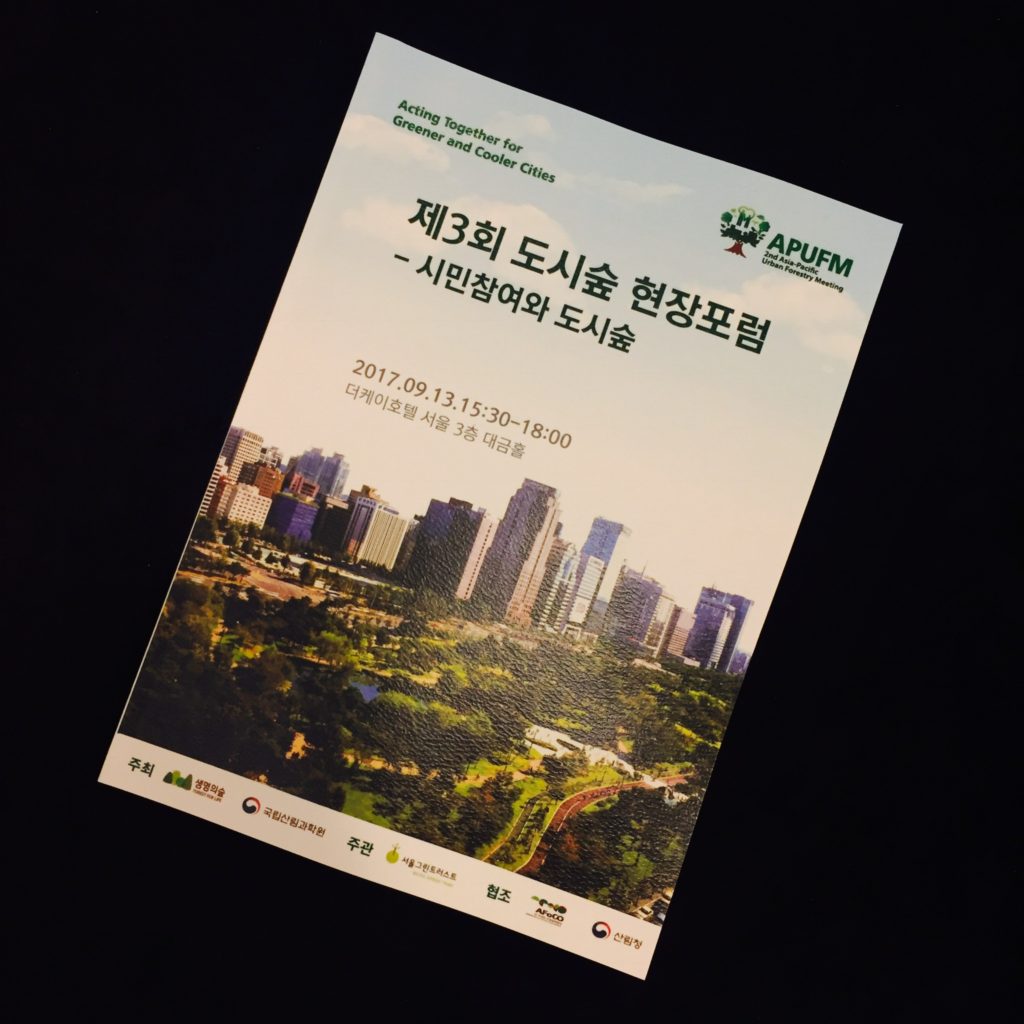이 중, 아태지역 도시숲회의의 스페셜 프로그램으로 9/13(월) 더케이호텔에서 ‘도시숲 현장포럼’이 진행되었습니다. 도시숲을 만들고 지키기 위한 시민들의 노력을 조명하고, 앞으로의 방향을 고민하는 자리에 서울그린트러스트도 주관단체로 함께 하였답니다.