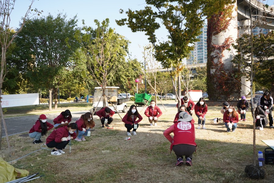 나무심기는 몸을 쓰고, 삽과 호미와 같은 도구를 이용하는 활동입니다. 그래서 몸이 긴장되어 있으면 혹시 모를 사고가 발생할 수 있어요. 안전한 공원봉사활동 진행을 위해 준비운동을 반드시 먼저 진행합니다!🏃♀️🏃♂️