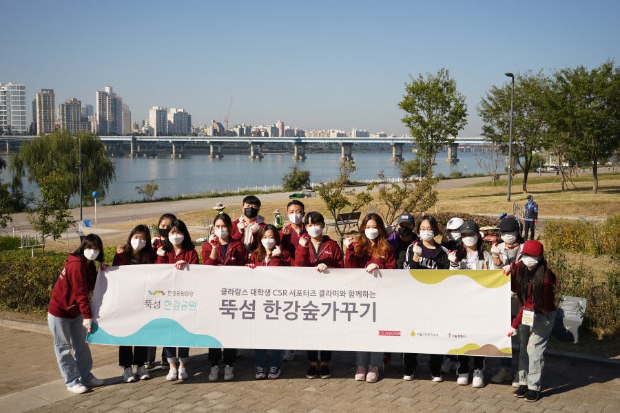 코로나19 방역지침에 따라 많은 인원이 함께할 수 없어 클라랑스 CSR서포터즈 클라미는 2차로 나누어 활동을 진행했습니다. (야외 공간이지만, 많은 인원이 한 번에 모이는 것은 자제해야 해요!)