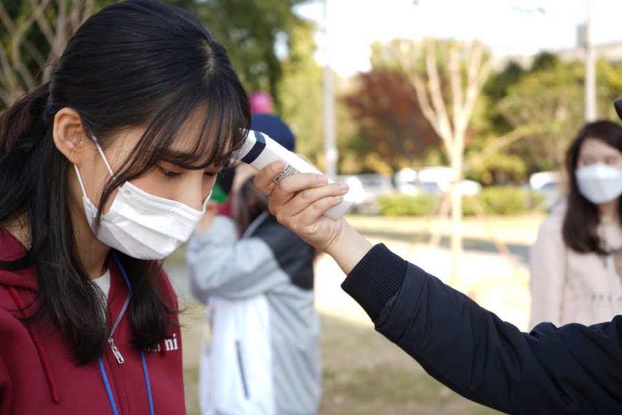체온 측정과 손 소독 후 한강숲가꾸기 봉사활동 시작~!😷