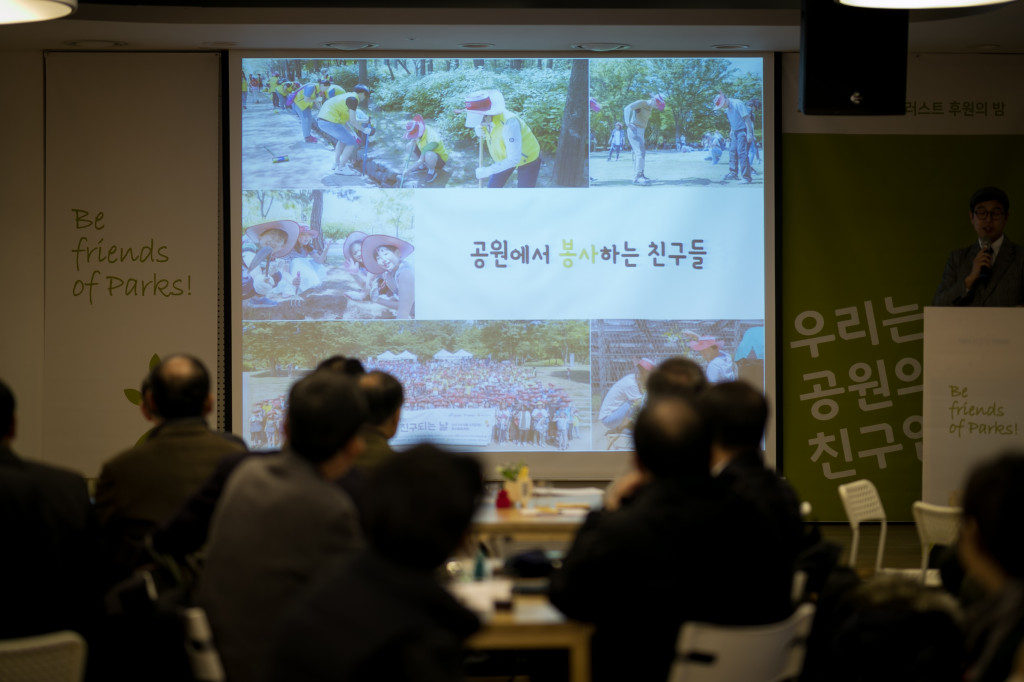 소셜크루의 강석일님의 사회로 본격적인 후원의 밤이 시작하였습니다. '우리는 공원의 친구입니다'라는 주제에 맞춰, 먼저는 친구들을 소개해야겠지요?