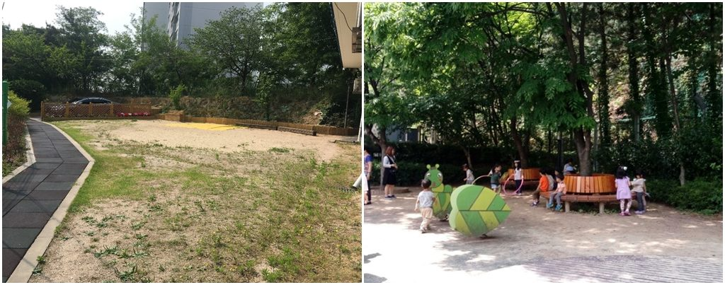| 금호어린이집(좌)과 응봉어린이집(우)의 작은숲 조성 예정공간