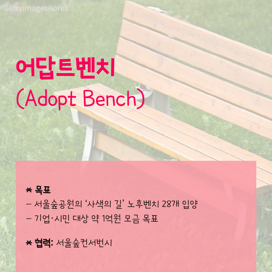 - 서울숲공원의 '사색의 길' 노후벤치 28개 입양